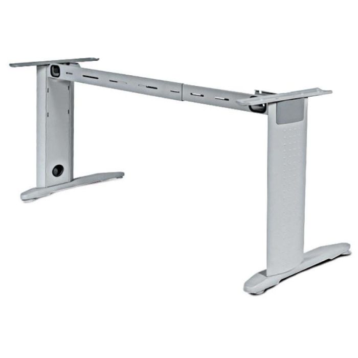 Está fabricado en aluminio y hierro. Este bastidor tiene un acabado en gris RAL 9006. La barra central extensible permite ajustar el largo de la mesa entre 1200 mm y 1800 mm.
