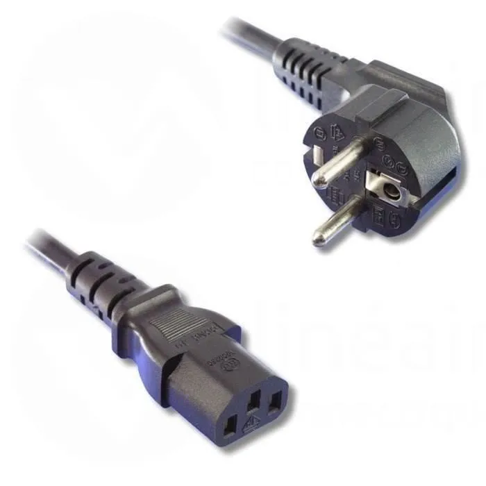 Ce câble d'alimentation LINEAIRE EC211B de 1,20m est composé d'une fiche 2 Pôles + Terre et d'une fiche femelle type IEC C13. Il permet d'alimenter en 220V / 10A les appareils électriques de type informatique, Audio / vidéo. Le câble est de type 3 x 0,75mm².