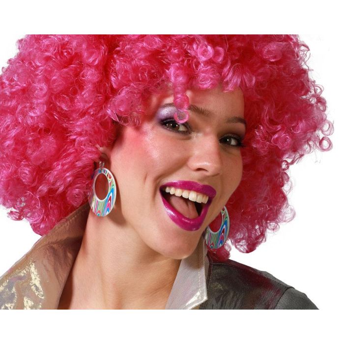 Boucles d'oreilles grandes ronde multicolores hippie pour femme adulte - Accessoire pour fêtes 70s, déguisement ou ambiance disco