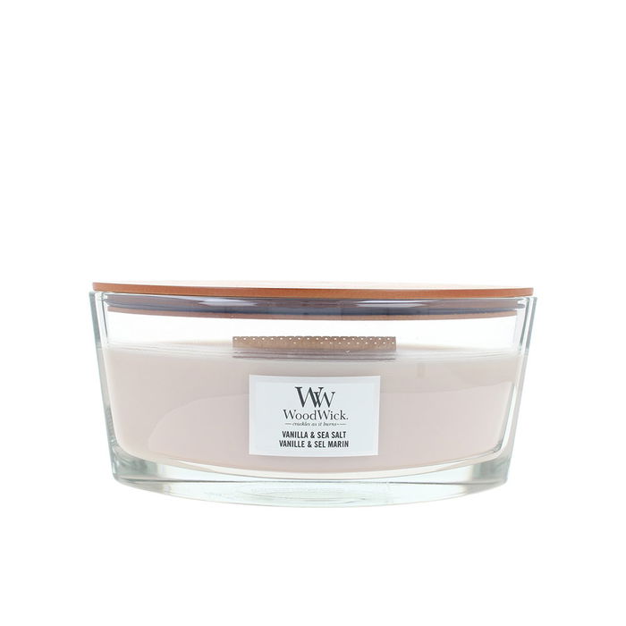 WoodWick Bougie Parfumée Vanille & Sel de Mer 453,6 g Crépitement Cheminée Cire de Soja Premium Expérience Sensorielle Apaisante