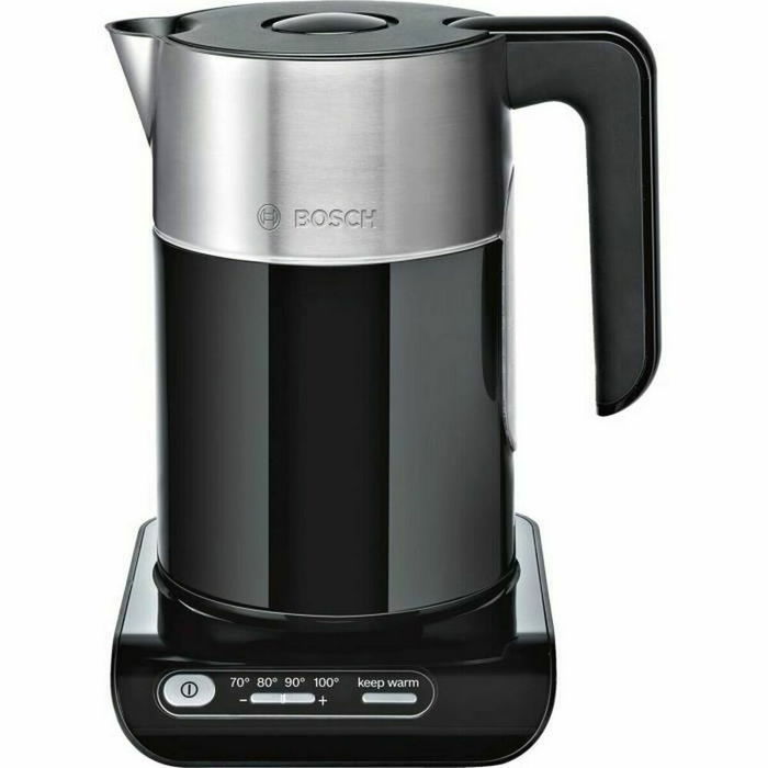 Bosch TWK8613 - Bouilloire électrique Styline 1,5 L 2400 W - Noir - Thermostat réglable, indicateur de niveau, arrêt sécurité, base 360°, sans fil