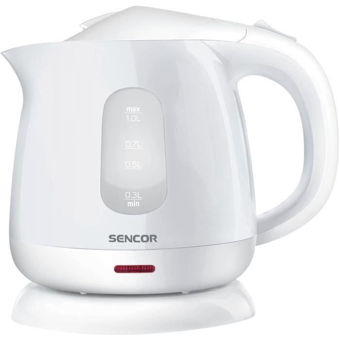 Sencor SWK 1010WH Bouilloire électrique 1100 W 1 L Blanc, base inox, filtre amovible, sécurité
