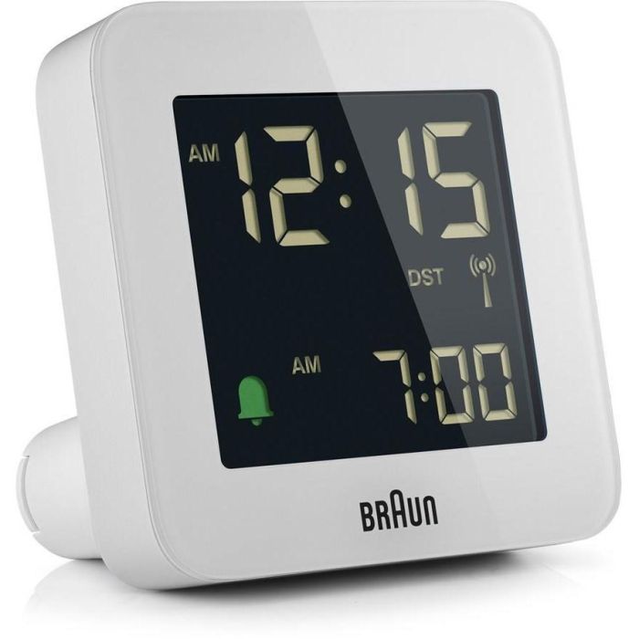Braun BC09-DCF, Réveil numérique, Carré, Blanc, 12/24h, LCD, Batterie