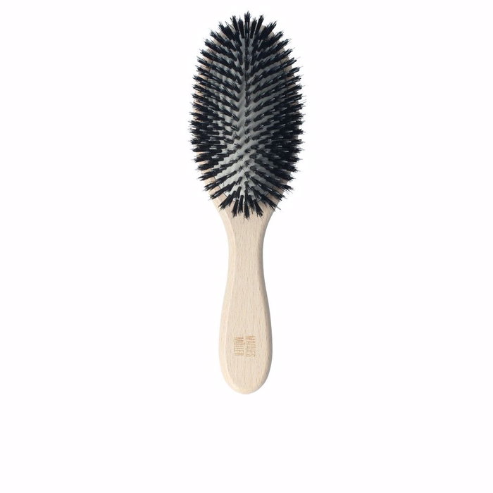Confectionnée avec des poils de sanglier et dotée de pointes en nylon, cette brosse repose sur un support en caoutchouc et une base robuste en bois de hêtre, le tout fini avec une finition brillante en cire.