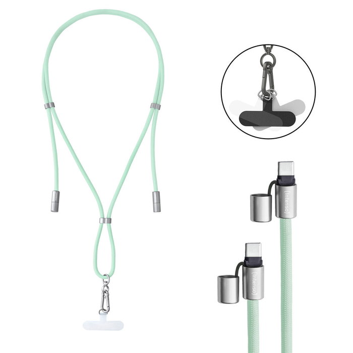 Le câble USB-C de la marque INTENSO, modèle 7991007, est un câble USB-C spécialement conçu pour offrir des connexions et une charge efficaces sur les appareils compatibles avec cette norme. Il mesure 1,65 mètre, facilitant son utilisation dans diverses situations, de la connexion à un chargeur au transfert de données entre appareils. Son design se distingue par sa couleur verte et il est fabriqué avec des matériaux résistants tels que le nylon et un alliage de zinc, garantissant durabilité et flexibilité. Ce câble dispose de connecteurs USB-C mâle aux deux extrémités, assurant une compatibilité universelle avec les équipements modernes utilisant cette interface. Il supporte une puissance maximale de 60 W, compatible avec les technologies de charge rapide comme Power Delivery 3.0 et Quick Charge 4.0, permettant une recharge efficace et sécurisée des smartphones, tablettes, ordinateurs portables et autres appareils. De plus, il offre un débit de transfert de données allant jusqu’à 480 Mbps, idéal pour déplacer des fichiers rapidement et sans interruption. Son poids léger de 35 grammes et son design ajustable avec clip pour le porter autour du cou apportent confort lors du transport et de l’utilisation, le rendant particulièrement pratique pour les utilisateurs qui doivent garder le câble toujours accessible. La combinaison de ces caractéristiques fait de ce modèle une solution fiable et pratique pour ceux qui ont besoin d’un câble USB-C polyvalent et robuste au quotidien. En résumé, il constitue un accessoire fonctionnel et durable, adapté à de nombreux appareils et besoins de charge et transfert de données.