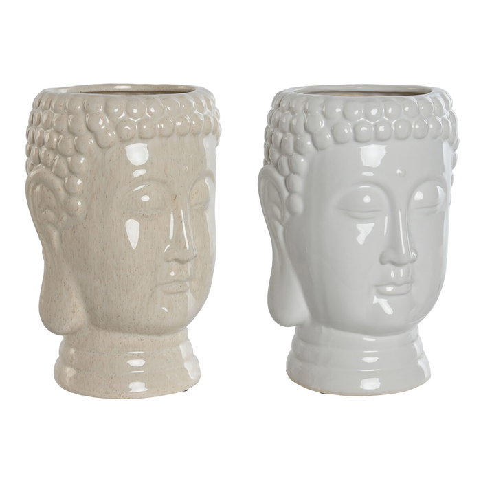Cache-pot Home ESPRIT Blanc Beige Céramique 15 x 15 x 25 cm (2 Unités)