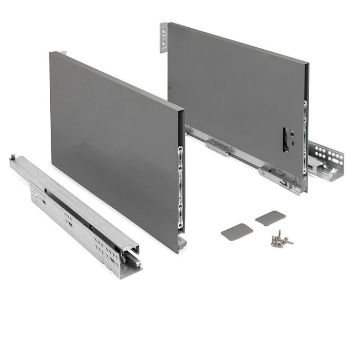 Este cajón cuenta con un sistema de cierre amortiguado, garantizando suavidad y silencio en cada uso. Disponible en colores blanco y antracita, se adapta a diversas necesidades de almacenamiento.
