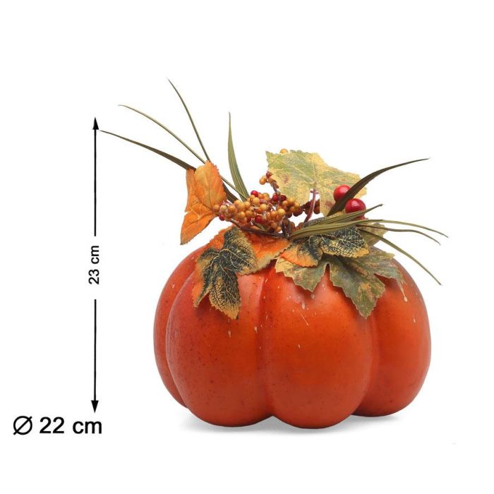 Calabaza Decorativa Orange avec Feuilles et Baies 22 x 23 cm pour Décoration d'Automne - Accessoire Rustique