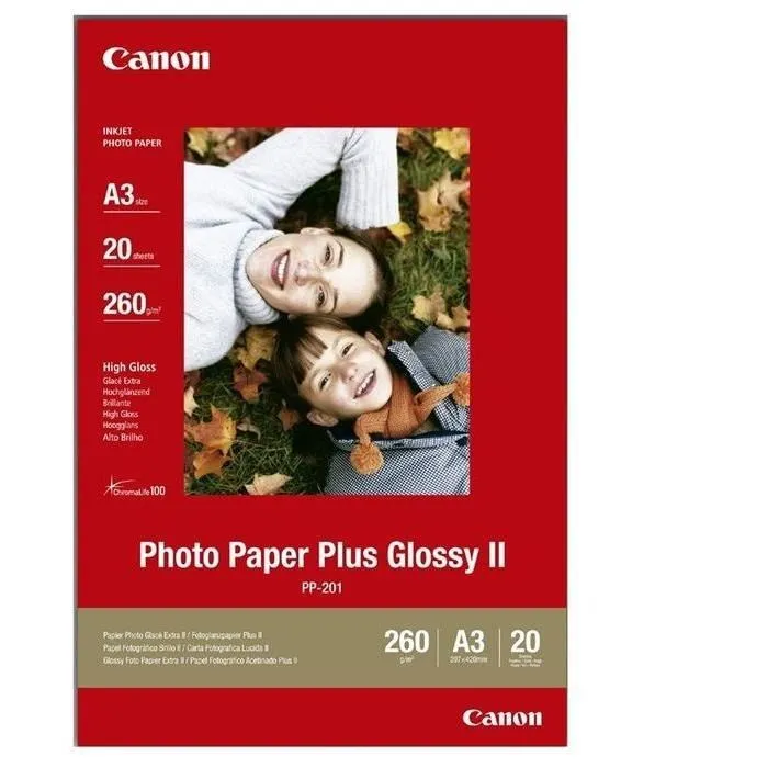 Le papier photo CANON PP-201 est idéal pour l'impression de photos de qualité professionnelle. Avec un grammage de 260g/m2, il offre une excellente tenue en main et une grande résistance a l'eau. Ce pack contient 20 feuilles au format A3.