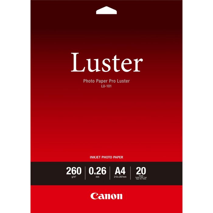 Canon Papier Photo Professionnel Lustré LU-101 A4 - 20 feuilles, Satin, 260 g/m², Blanc, 260 µm, 10 - 35 °C, 10 - 35 °C