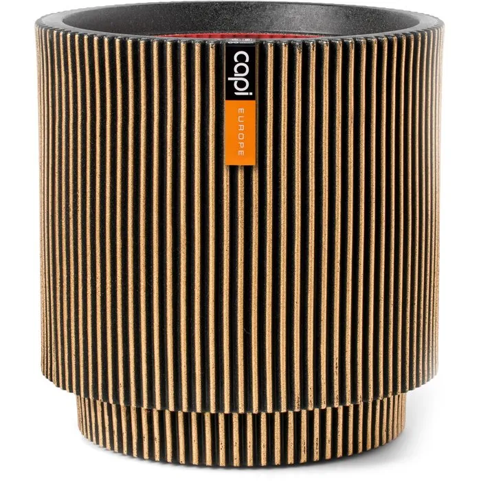 Capi Europe Groove NL Vase cylindrique design 36 x 38 cm couleur noir/or pour intérieur et extérieur
