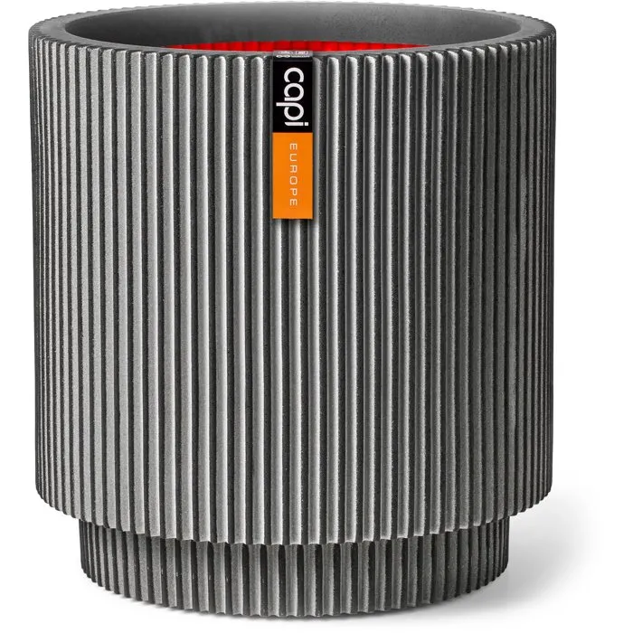 Capi Europe Vase cylindre Groove NL 36 x 38 cm - Anthracite - Design moderne pour intérieur et extérieur
