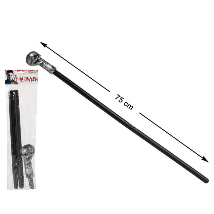 Cetro Calavera Plateada 75 cm Décoratif pour Déguisement - Sceptre Noir Tête de Mort Argenté Démontable Accessoire Cosplay