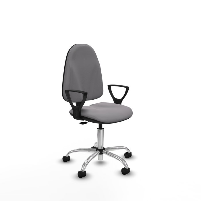 Chaise Algarra Contact permament de base Cuir écologique Gris Structure chromée Accoudoirs fixes Sans appui-tête Roulettes en nylon 50 mm