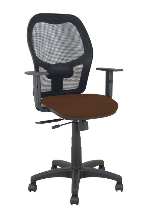 Chaise Alocén Synchrone/Traslack tissu Marron foncé Maille Noir Structure polyamide noire Accoudoir 1D Sans appui-tête Roulettes en nylon 50 mm
