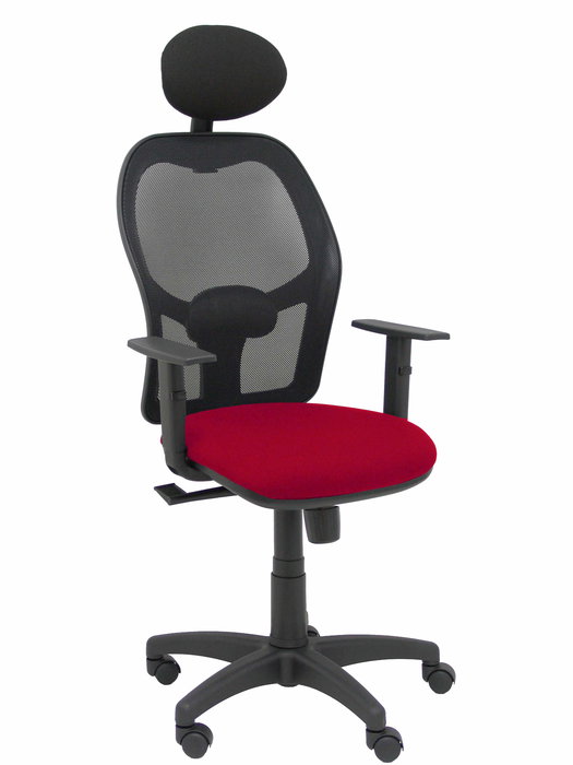 Silla de oficina Alocén con mecanismo Sincro tapizada con Tela color Granate y malla color Negro. Equipada con lumbar 1D, Brazos 1D, Cabecero Fijo y Ruedas de nailon 50 mm