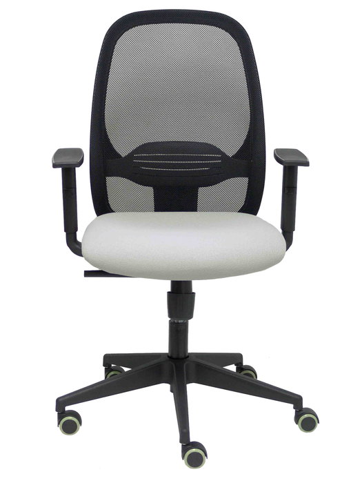 Chaise Cilanco Synchro 3 positions tissu Gris clair Maille Noir Base pyramidale noire Accoudoir 1D Sans appui-tête Roulettes pour moquette