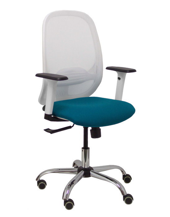 Chaise Cilanco Synchro 3 positions tissu Vert pétrole Maille Blanc Structure chromée Accoudoir 1D Sans appui-tête Roulettes pour moquette
