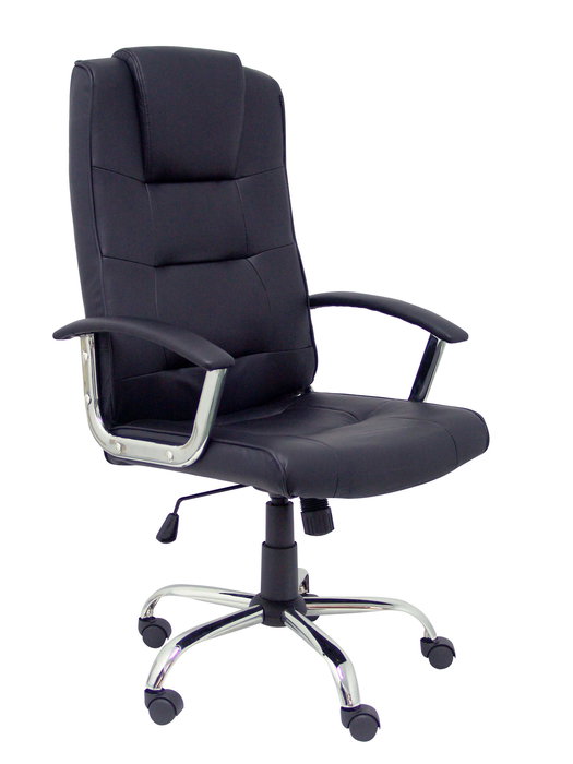 Fauteuil Guadalimar Mécanisme d'inclinaison Cuir écologique Noir Structure chromée Accoudoirs fixes Sans appui-tête Roulettes en nylon 50 mm