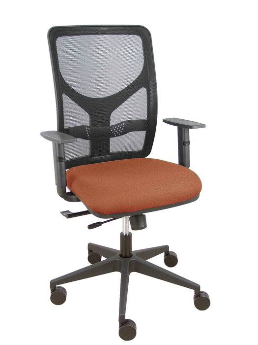 Chaise Motilla Synchrone/Traslack tissu Marron Maille Noir Base pyramidale noire Accoudoir 1D Sans appui-tête Roulettes 65mm nylon