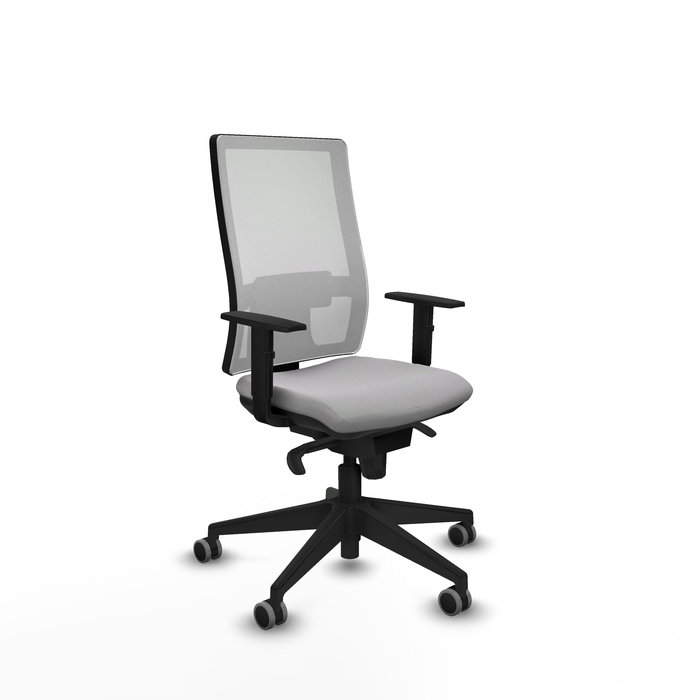 Chaise Horna Synchro 5 positions tissu Gris clair Maille Blanc Base pyramidale noire Accoudoir 1D Sans appui-tête Roulettes 65mm pour moquette