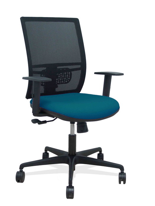 Chaise Yunquera Synchro 4 positions tissu Vert pétrole Maille Noir Base en nylon noir Accoudoir 1D Sans appui-tête Roulettes 65mm nylon