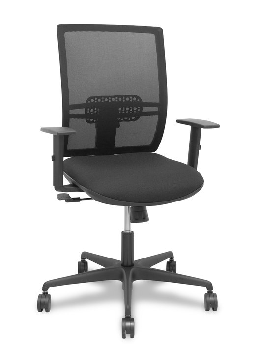 Chaise Yunquera Synchro 4 positions tissu Noir Base en nylon noir Accoudoir 1D Sans appui-tête Roulettes 65mm nylon