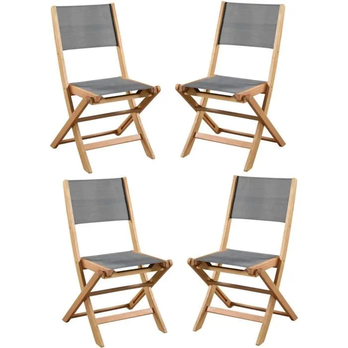 EDEN - Lot de 4 chaises de jardin pliantes en bois d'acacia FSC, assise textilene gris - 58 x 58 x H90 cm