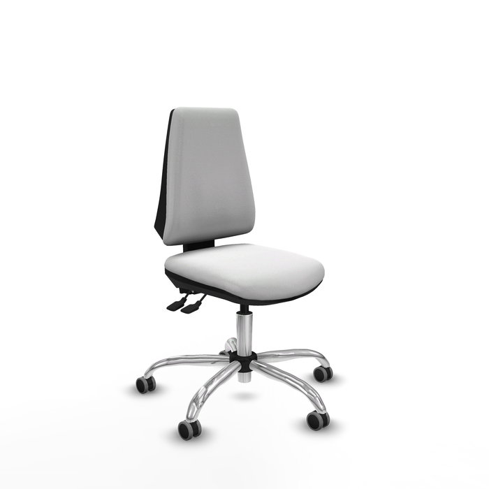 Chaise Elche Asynchrone Tissu Blanc Structure chromée Sans accoudoirs Sans appui-tête Roulettes 65mm pour moquette