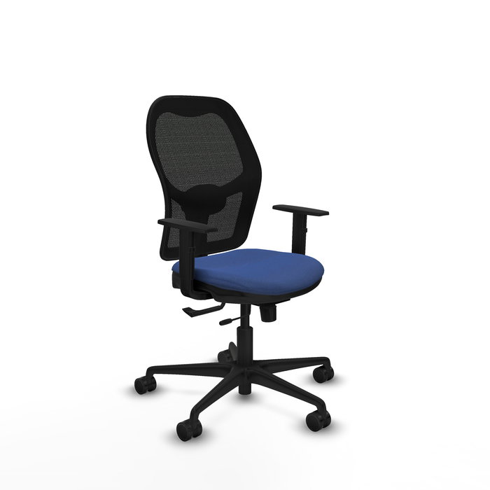 Chaise Jorquera Synchrone/Traslack tissu Bleu foncé Maille Noir Base en nylon noir Accoudoir 1D Sans appui-tête Roulettes 65mm nylon