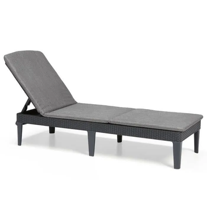 KETER Allibert Chaise Longue Bain de Soleil Jaipur en Résine Imitation Rotin Tressé Gris Graphite, Dossier Réglable 4 Positions avec Coussin (187 x 58 cm)