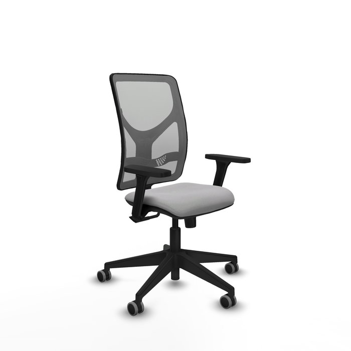 Chaise Motilla Synchro 3 positions tissu Gris clair Maille Gris Base pyramidale noire Accoudoir 3D Sans appui-tête Roulettes 65mm pour moquette