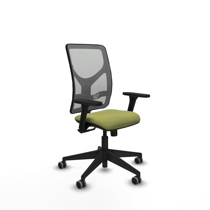 Chaise Motilla Synchro 3 positions tissu Vert olive Maille Gris Base pyramidale noire Accoudoir 3D Sans appui-tête Roulettes 65mm pour moquette