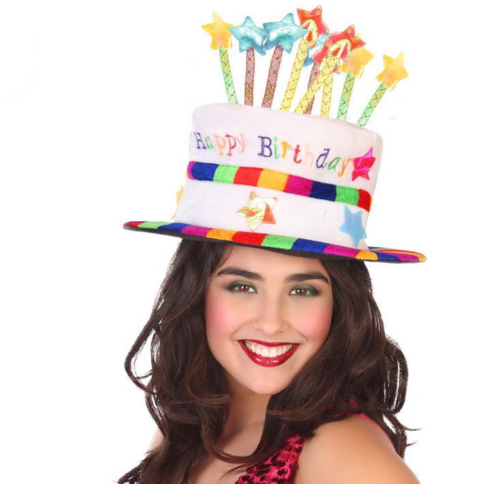 Chapeau de fête d'anniversaire original multicolor avec étoiles brillantes et bougies - Accessoire pour adulte