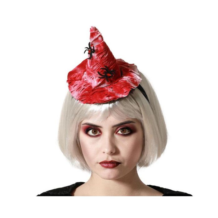 Chapeau de Sorcière Rouge avec Toile d'Araignée pour Halloween, Carnaval et Fêtes à Thème Gothique