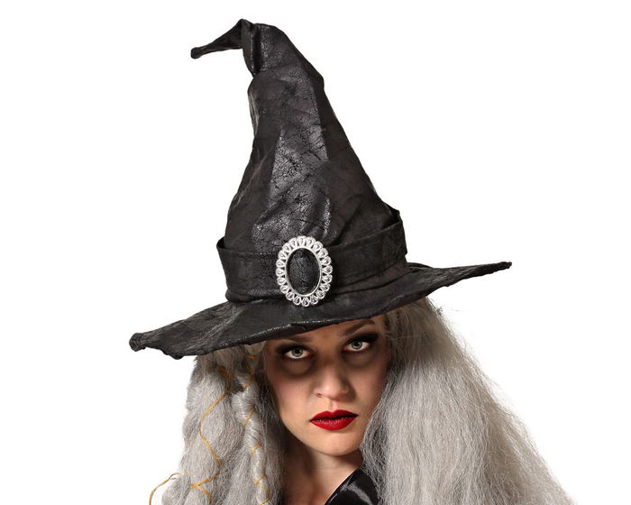 Chapeau de sorcière noir froissé avec boucle décorative pour adulte - Accessoire pour Halloween et déguisements