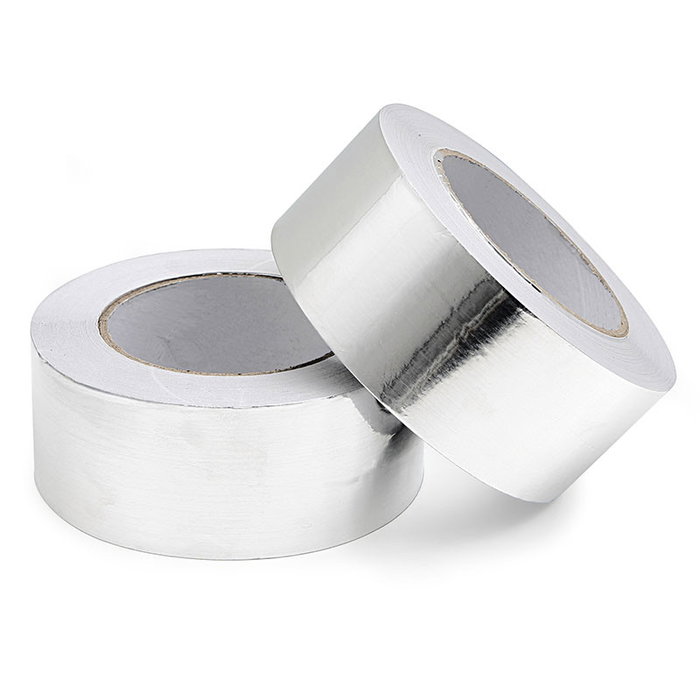 Ruban adhésif en aluminium de couleur argent, idéal pour le scellement professionnel. Parfait pour les conduits d'aération, les systèmes de climatisation, les cheminées et les panneaux isolants.