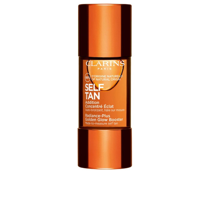 Concentré de LUMINOSITÉ Autobronzant pour le visage de Clarins. Offrant un bronzage sur mesure, ce produit enrichit votre routine de soin quotidienne. Composé à 99 % d'ingrédients naturels, cet autobronzant est destiné à toutes celles qui recherchent un hâle éclatant sans avoir recours aux rayons solaires, que ce soit avant, durant ou après la saison estivale.