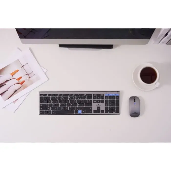 Bluestork Pack GRAPHEME - Ensemble Clavier AZERTY et Souris Sans Fil 2.4 GHz - Métal Brossé, Silencieux, Touches Ciseaux, Compact - Pour Bureau