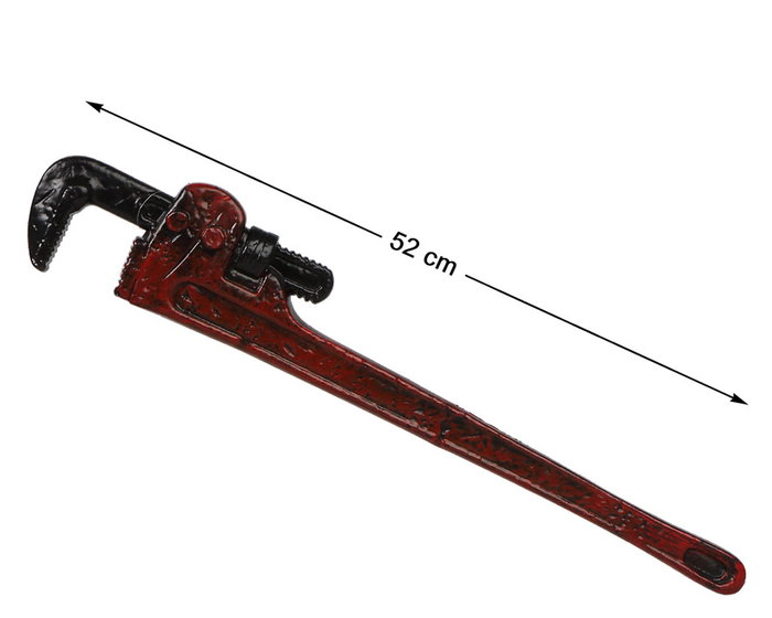 Clé à molette rouge pour déguisement de plombier, ouvrier ou tueur, accessoire Halloween, 52 cm, finition vieillie noir et rouge