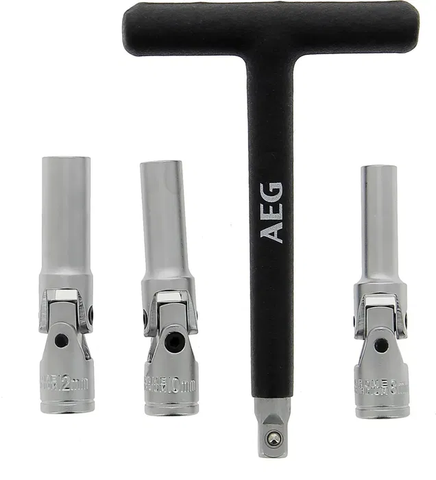 AEG - Clé à bougie de préchauffage Diesel avec 3 douilles 8, 10, 12 mm, poignée en T antidérapante et acier inoxydable