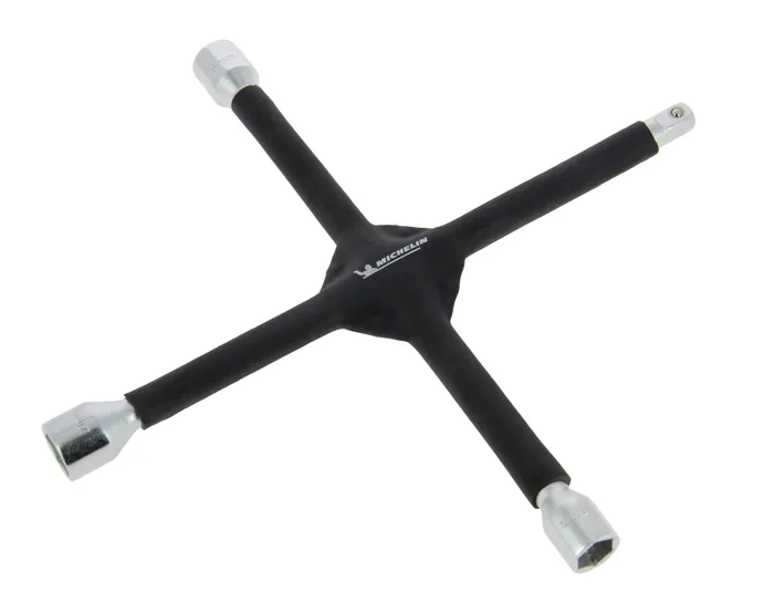 Michelin - Clé en croix démonte-roue renforcée 17/19/21mm et carré 1/2", revêtement mousse antiglisse, acier inoxydable haute qualité