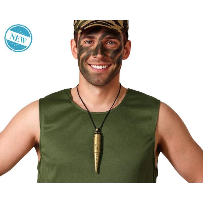 Colgante Balle Militaire Doré 14 cm avec Cordon Noir - Pendentat pour Costume Militaire, Cosplay, Fête à Thème