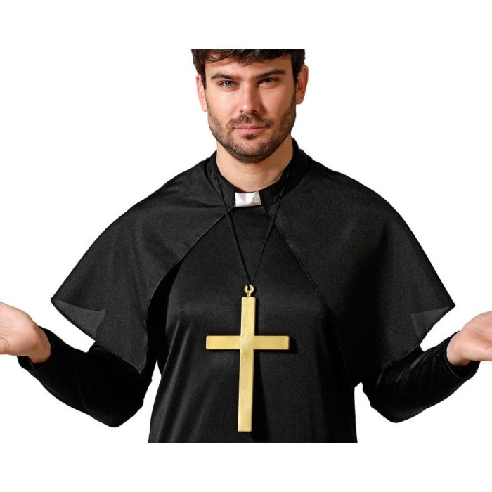 Collier avec croix dorée XXL pour déguisement de prêtre - Collier de costume pour moine ou prédicateur, accessoire de fête et d'humour