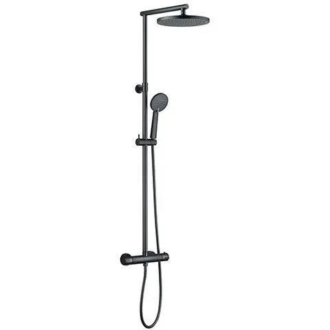 Edouard Rousseau Grafito - Colonne de douche thermostatique avec tête orientable Ø 250 mm, bras télescopique, douchette 2 jets et sécurité anti-brûlure - Gris anthracite