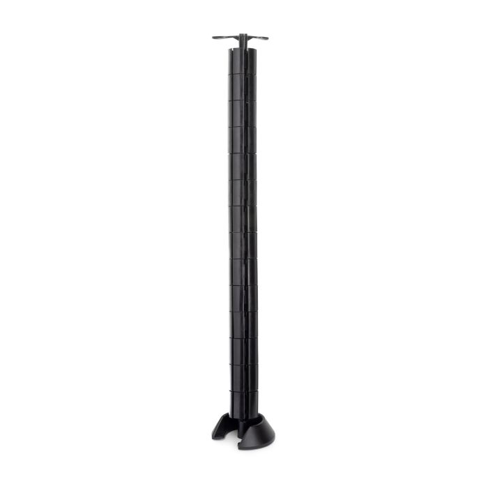 La colonne de gestion des câbles est en plastique avec une finition noire qui est une tendance sur le marché d'aujourd'hui, ce qui lui permet d'être intégrée dans le mobilier.