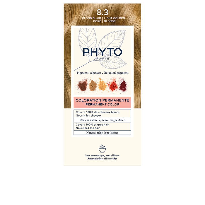 Phyto COLOR #8.3-Rubio Claro Dorado 4 u - Coloration Permanente Enrichie en Plantes pour Cheveux Naturels et Éclatants