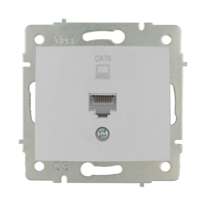 Le connecteur RJ45 ERP88 de la marque Solera est une solution technique conçue pour des installations réseau de haute qualité, spécialement pensée pour un montage encastré qui facilite une intégration esthétique et fonctionnelle dans tout environnement. Fabriqué en thermoplastique blanc, ce connecteur offre une résistance optimale et une finition soignée qui s’adaptent à plusieurs styles décoratifs. Il est conçu pour supporter des connexions à haute vitesse grâce à ses contacts en argent, garantissant une conductivité élevée et une forte capacité de coupure, augmentant ainsi la durabilité et la fiabilité dans des environnements exigeants. Ses dimensions standard de 83x81 mm conviennent à la plupart des installations modulaires actuelles. De plus, il dispose d’un système de connexion par vis assurant un montage solide et stable, facilitant également la maintenance ou la révision sans compromettre l’intégrité du câblage. Compatible avec les câbles de catégorie Cat6, ce connecteur permet une transmission de données avec une bande passante améliorée et une moindre interférence, assurant ainsi une connexion robuste et stable pour les réseaux informatiques et de communication. Intégré à la série Europa de Solera, l’ERP88 représente une option fiable pour les professionnels et utilisateurs recherchant des composants réseau aux normes élevées, tant en performance qu’en finition. En résumé, ce connecteur RJ45 allie qualité des matériaux, design pratique et performances optimales pour garantir une installation sûre et efficace.