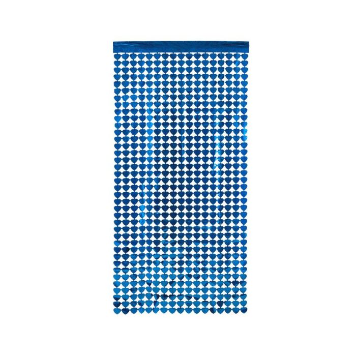 Cortina Métallisée Décorative à Cœurs Bleus 200 x 100 cm - Décoration pour Fêtes (St-Valentin, Baby Shower, Anniversaires)
