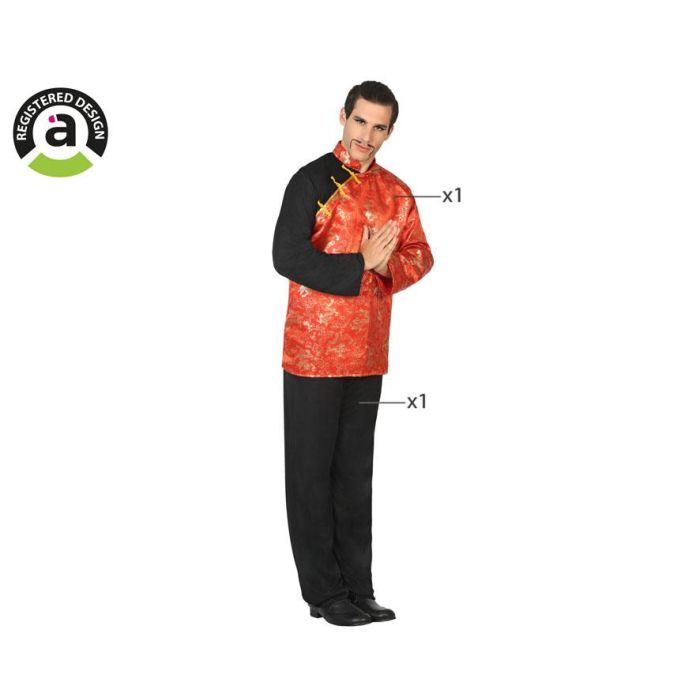 Costume d'Homme Adulte Thème Chinois XL, 2 Pièces (Veste et Pantalon) en Polyester Multicolore pour Carnaval ou Fête Déguisée